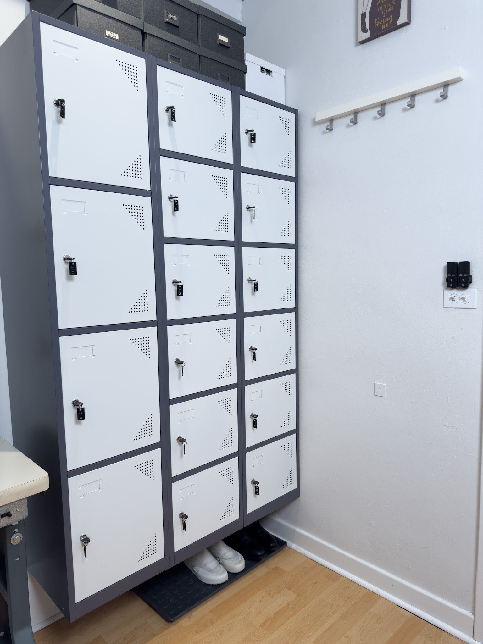 - Personal locker (Dimensions: H 17.2" x W 15" x D 16")